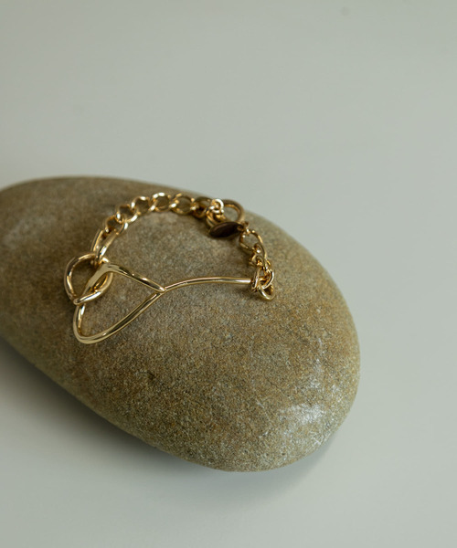 【こだわりのコンビデザイン】 ツイストさせた独特なシルエットのメタルパーツとチェーンを組み合わせたニュアンスたっぷりなブレスレット。 クセのあるデザインながら、それぞれ細身のメタルパーツなので重くならず、程よい抜け感を演出してくれます。 ※メッキ製品は変色してしまいがちです。こまめなお手入れで防止してください。アレルギー体質の方や体調が低下している方など、かぶれることがありますので十分にご注意ください。 ※アクセサリーは壊れやすいものです。取扱いにご注意ください。 ※その他お取り扱いに関しましては、商品に付属のアテンションタグをご覧ください。 ※商品画像は、光の当たり具合やパソコンなどの閲覧環境により、実際の色味と異なって見える場合がございます。予めご了承ください。 ※商品の色味の目安は、商品単体の画像をご参照ください。 ▼お気に入り登録のおすすめ▼ お気に入り登録商品は、マイページにて現在の価格情報や在庫状況の確認が可能です。 お買い物リストの管理に是非ご利用下さい。
