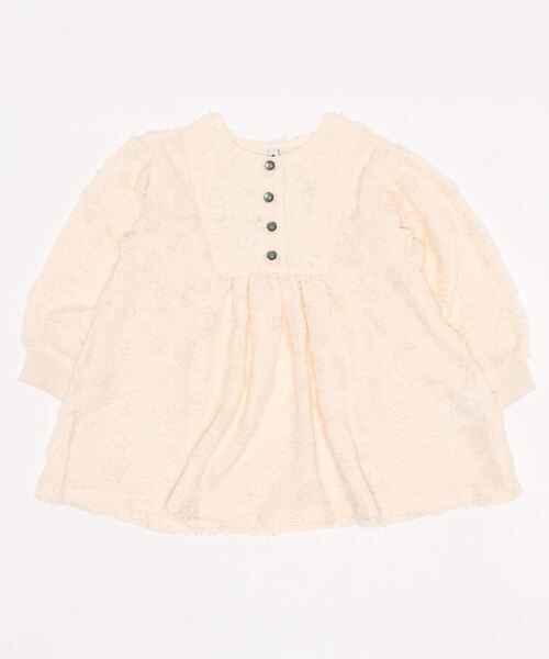[140-150,F]もあります フサフサの柄が可愛いジャガードシフォン生地のブラウスです。 ふんわりボリューミーなお袖は袖口がリブになっているので 脱着がしやすくお子様も着用していただきやすいデザインです。 ● maarook (マルーク)2009 A/Wよりスタートしたベビー + キッズ + おとな服size: 70 ~ 150cm M(160cm)かわいいだけじゃない、シンプルなだけでもない、 クールだけどちょうどいいバランスの服をつくっています