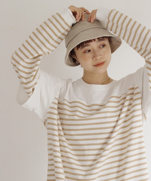 1枚でレイヤードスタイルが完成するロングTシャツ。 ゆとりのあるシルエットとボーダー柄がラフな印象にしてくれます。 お袖は半袖TシャツとロンTを合わせたようなフェイクレイヤードで、一枚でこなれた雰囲気に。 顔周りは無地にすることでベーシックになり過ぎず抜け感をプラス。 ファティーグパンツやデニムを合わせた大人カジュアルなスタイリングはもちろん、 ロングスカート等のレディライクなアイテムとも相性良く着ていただけます。 気になるヒップラインもすっぽりと隠れる着丈で体型カバーにも◎ 肩落ちデザインで華奢見えするのも嬉しいポイントです。 肌当たりの良いコットン100%。 柔らかく伸縮性があるので快適に着ていただけます。 - - - - - - - - - - - - - - - - - - - - - - - - - - - - - - - - - 透け感:なし 裏地:なし 伸縮性:あり 光沢感:なし - - - - - - - - - - - - - - - - - - - - - - - - - - - - - - - - - ※ 撮影時の照明などの環境と、モニターに表示される色味がメーカーにより変わってしまう等の理由により、実際にお届けする商品と、ご覧になられているアイテムの色が若干異なる場合がございます。ご了承下さいませ。