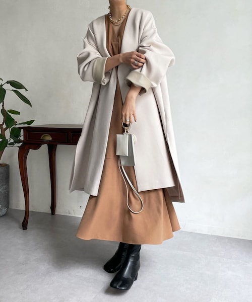 ■2022 AUTUMN & WINTER ITEM■デイリーに使いやすいノーカラーデザインのコートハリ感としなやかさを兼ね備ええたあダンボール素材を使用したコート。洗練されたデザインで、シンプルながらも品のある1着です。首元がすっきりと見えるノーカラーデザインに、裾にかけてAラインに広がるシルエットで、女性らしさをプラス。袖口はフェイクレザーの素材に切り替えているので、折り返してアクセントをつけた着こなしがおすすめです。インナーを選ばずにカジュアルスタイルにもキレイめスタイルにもマッチしてくれるので、オンオフ問わず着まわしていただけますよ!- POINT -・着回し力◎・首元がすっきりと見えるノーカラーデザイン・裾にかけてAラインに広がるシルエット--------------------------------洗濯:水洗い不可能透け感: なし裏地: なし伸縮性: なし光沢感: なし--------------------------------【 ♡ をクリックでお得な情報をお知らせいたします 】〈 商品のお気に入り登録 〉 お気に入りアイテムのお値下げ・再入荷・在庫ラスト1点など通知を受けることができます。〈 ブランドのお気に入り登録 〉DOUDOUの新商品や再入荷、セール、クーポン配布などお得な情報を受けることができます。--------------------------------------※ 生産の都合上、お届け時期が前後する場合がございます。※ 掲載画像の商品の色味は、 撮影場所や光の当たり具合などにより色味が異なって見える場合がございます。 また、お客様のお使いのPC・スマートフォン等のモニター環境などにより色味が異なって見える場合がございます。予めご了承の上ご注文ください。 ※ 着用、お取り扱いの際は、商品についている品質表示とアテンションタグを必ずご確認下さい。