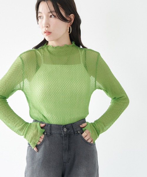 凹凸感のある格子柄レースがモダンな雰囲気を放つプルオーバー。 上品な透け感があるので、インナーをしっかりと目立たせてくれるのがポイント◎ 襟や袖口に施されたメロウが、ひらひらとガーリーな要素をプラス。 トップスとしてはもちろん、ワンピースと合わせればエレガントなスタイルを楽しめるアイテムです。 透け感[有り] 裏地[無し] 伸縮性[有り] 光沢感[無し] 生地の厚さ[薄手] 付属品[無し] ポケット[無し] ● earth music&ecology ● (アースミュージック&エコロジー) 人とライフスタイルと環境に寄り添い、 エントリーアイテムとトレンドアイテムをMash upさせ、 いつでも心地よく過ごせる、自由な大人の女性を表現します。 ▼ 商品のお気に入り登録がおすすめです ▼ 商品ページ内の「♡」ハートマークをクリック。完売時の再入荷や、最後の1点の通知、コーディネート画像がアップされたとき、お得なお値下げの際の通知を受ける事ができます。 【お知らせ】ページでも通知が確認できます。