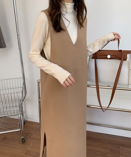 深めのVネックでレイヤードスタイルを楽しめるジャンパースカート。 ボディラインを拾わないゆとりあるシルエットで着心地も快適。ロング丈でカジュアルからきれいめまで合わせるトップス次第で雰囲気を変えられます。 裾のサイドスリットで軽やかな印象に。 カジュアルになりすぎず、大人っぽく着こなすことができる1枚です。 足元にブーツを合わせて着たり、パンツとのレイヤードも◎ インナーやボトムスを合わせた重ね着コーデもおすすめです。 ▼お気に入り登録のおすすめ 【気になるアイテムを登録】 ハートをクリックしてお気に入りに登録すると 完売カラーの再入荷やラスト1点の通知、セールの通知を受けとることができます。 【ブランドを登録】 新商品や再入荷、セール通知など、いち早くブランドの情報を受けとることができます。是非ご利用頂き、お買い物をお楽しみ下さい。 ▼商品について ・サイト上のカラー名と、お届け商品に記載されているカラー名が異なる場合がございます。 ・商品の色味は、撮影場所や光のあたり具合などにより色味が違って見える場合がございます 。また、お客様のお使いのPCのモニター環境などにより色味が違って見える場合がございます。 予めご了承の上ご注文下さい。 ★詳細ディテールは、下記のライブ配信でリクエスト頂くことで御確認できます。 tiktokアカウント ①「abiを作った悪魔」最新情報をチェック! ②「ENチャンネル」平日毎朝7時~9時LIVE配信でお得な情報をGET!