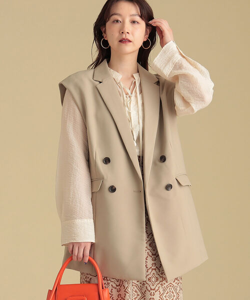 秋冬も注目のアイテム■デザイン人気のノースリーブベストが秋冬仕様になって登場!裏地が付き、高級感のある生地感にアップデート。全体のサイズ感はそのままに、バックベンツを入れてシンプルにより合わせやすいよう仕上げました。■ディテールボタン部分が下側のみ留まる新デザインを採用。カッチリしすぎず、カジュアルなスタイルにもはまります。■サイズ程よくゆとりがありながらすっきりとしたシルエット。お尻が隠れる着丈の長さで、幅広いレイヤードスタイルをお楽しみいただけます。■素材シワになりにくい生地で、ストレスなくお手持ちの服に合わせていただけます。お洗濯はドライクリーニング対応となります。【BEIGE】BEAMS STAFF:H158 Size:1【BROWN】Model:H166 B76 W54 H85 Size:1生地の厚さ:普通透け感:なし伸縮性:なし光沢感:なし裏地:あり【スタッフレビュー】スタッフ:kawa-kami身長:155cm / 普段サイズ:S / 着用サイズ:0サイズ感: 太ももにかかる着丈、ノースリーブだが幅がある為二の腕も気になりづらい◎素材感: しっかり見えする素材なのでON/OFF使える!ポイント: こちらを+1着するだけで着回しの幅が広がります☆※光の当たり具合やパソコンなどの閲覧環境によって、実際の色味と異なって見える場合がございます。予めご了承ください。※商品の色味は商品単体で撮影した画像をご参照ください。