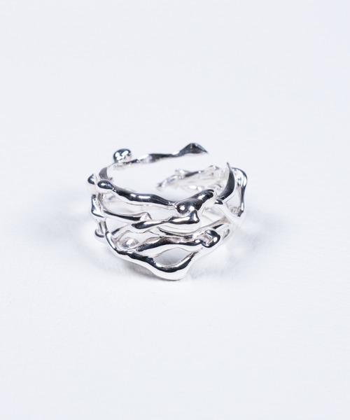 【Melt03】 Aneun -アネン- アイスランド語の否定、歪みなどから成る造語。 歪みを正すのではなく、鋭くしていく。 歪な形をした個性を育んでいき、ブランドも消費者も独特の世界 観を共に作ることを目的とします。 -白加工- 金属と酸の化学反応を応用し、silver925の表面を純白に仕上げた表面加工になります。 質感はマットな手触りで、手に馴染みやすく、光沢のあるsilverとはまた違った高級感があります。 -黒加工- 真鍮の表面にルテメッキを施した加工になります。 艶がある漆黒の見た目で、燻とは違った高級感があります。 黒曜石のような魅力的な黒色が特徴的です。 ※全てオーダー頂いた後にハンドメイドするため、およそ10日から二週間でお届けとなります。 Mサイズ 17号 Lサイズ 19号