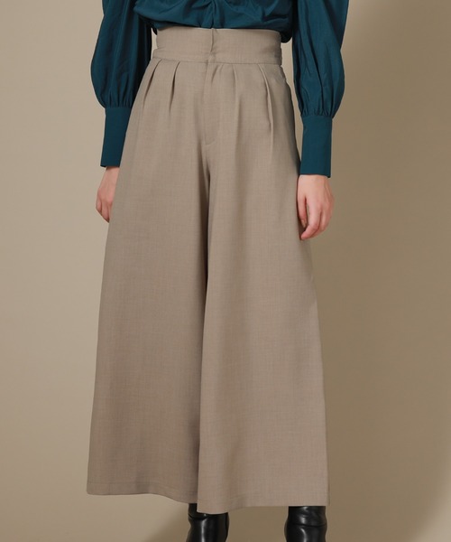 ハイウエストデザインで脚長効果抜群のワイドパンツ。 洗練された印象の大人カラーも魅力的* ■point ・スタイリッシュなワイドシルエット ・前後どちらでも結べるウエストリボン ・大人なカラーリングでスタイリングを格上げ ■detail 洗練された着こなしに導く広がり感のあるワイドシルエット。 スタイリッシュな印象ながらも、 ウエストの大きなリボンが女性らしさをプラスします* タックを効かせ、キュッと絞った ハイウエストデザインでスタイルアップ効果も抜群◎ どの色も秋らしさのある大人なカラーリングで、 スタイリングに奥行きを出してくれます。 ■coordinate デザイン性のあるシルエットと、ウエストリボンで シンプルなトップス合わせもキマります* リブニットと合わせてオンシーンに、パワショルなどの デザイントップス合わせでオフシーンに…とデイリーに活躍♪ 今年らしいクロップド丈とも相性抜群です◎ ■素材 素材:【表地】ポリエステル 100%【裏地】ポリエステル 100% 洗濯:ご自宅でのお洗濯が出来かねますので、クリーニングショップにご相談ください。 ********** 透け感…なし 裏地…あり 伸縮性…なし 光沢感…なし 生地の厚さ…普通 ********** ※撮影場所やお使いのモニター環境により若干お色味が異なる場合がございます。 ■商品のお気に入り登録■ ラスト1点の通知やセール通知、また完売していても再入荷時に再入荷通知を受け取ることができますので、是非ご登録ください♪ ■ブランドのお気に入り登録■ 新商品や再入荷など、お得な情報を受け取ることができます!ぜひご活用ください!