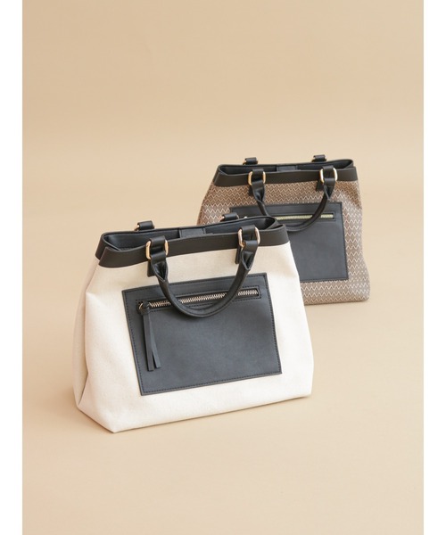 合皮との異素材コンビネーションがモダンな雰囲気を漂わせるトートバッグ。マチ幅が広く十分な収納力に加え、インナーポケットを備えているので整理整頓にも便利です。開口はマグネット仕様で大きく開くので、中身が見えやすいのも魅力的◎シンプルな無地とオリジナルのモノグラム柄のバリエーションにも注目です。※商品画像は、撮影環境やお客様のご利用のPC・スマートフォンのモニター環境などにより実物と色味に差異がある場合がございます。