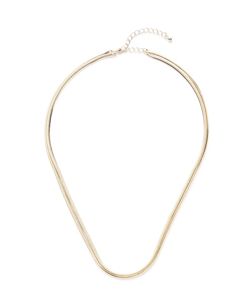 エッジのきいたスネークチェーンがポイントの2連ネックレス。2本重ねたスネークチェーンが適度なボリューム感を作り、首もとのアクセントになります。シンプルコーデに合わせやすい、シーズンレスで使えるアクセサリーです。