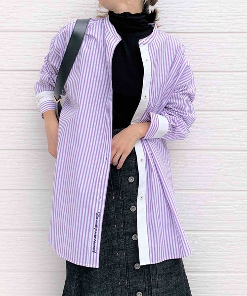 オーバーサイズが可愛いストライプシャツです。ゆったりめのサイズ感と袖口のタックがきっちりとした雰囲気を纏いながら大人の抜け感を演出。カフスはストライプと無地を組み合わせたバイカラーになっています。前立てにもカフスと同じカラーを入れており、ボタンを開けて着たときにもデザインを楽しめます。裾の刺繍もポイントになり、シャツスタイルをワンランクアップしてくれます。《インフォメーション》◆商品のお気に入り登録完売していても再入荷時に再入荷通知を受け取ることができますので、是非ご登録ください。◆ブランドのお気に入り登録新商品や再入荷などの情報を受け取ることができますので、是非ご登録ください。