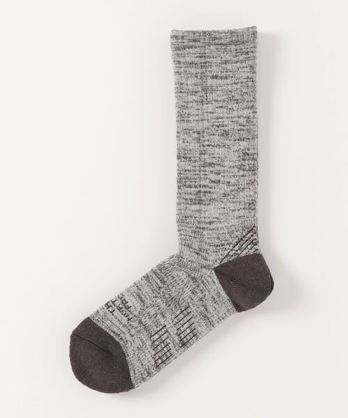 においのもととなる繊維上のバクテリア増殖を抑えるポリジン加工を施し、高い抗菌防臭機能を発揮するトレッキング用パイルソックスです。素材は、ウールを含む5種類の混紡地。やや厚みのあるパイル地に、アーチサポート機能やインステップ、アキレス腱へのプロテクター機能を付加することで、長時間の歩行をサポート。強度と快適さを兼ね備えた、汎用性の高いソックスです。