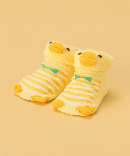 コーディネートにさらなる可愛さをプラスするアニマルモチーフのカップソックスです。 ベージュはライオン、クリームはひよこ、紺はペンギンを主役に採用。蝶ネクタイでおめかしした遊び心もこだわりポイントです。足裏にすべり止めプリントつき。