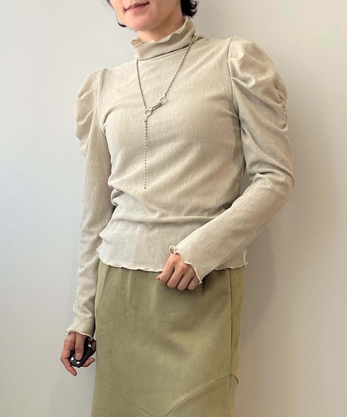 フェミニンなパワショルのカットソー☆ 【Design】 袖にギャザーを入れてボリュームを持たせたパワーショルダーは肩の丸みをカバーしてくれる有能トップス!! 生地を柔らかいものを使用してガッチリしないように女性らしい仕様にしました。 タートルネックで首元のクシュクシュ感が可愛らしい印象に。 布端はメロー始末で女性らしい上品なフリル仕様にしました。 丈は少し短めのショート丈。 インナーとしても重宝できそうな1枚です。 【Fabric】 シボ感のあるカット楊柳を使用。 ポリエステル素材なのでお手入れも楽々が嬉しいポイント☆ カットソー素材なので柔らかく、伸縮性がありストレスフリーで着られます。 透け感は若干有ります。 ※お手持ちのインナー着用をおススメします。 【Color】 ベーシック2色+くすみカラーの3色の5色展開 ・クロ(ブラック 黒色) ・オフ(ホワイト アイボリー 白色) ・グレー(ウォームグレー ミディアムグレー 灰色 ねずみ色) ・パープル(くすみパープル グレイッシュパープル) ・ベージュ(グレージュ ライトグレー) 【Coordinate】 シアー感のあるアイテムなので下にキャミソールなどを着用してジャケットとパンツのコーデはシンプルな大人コーデになります。 ジレやベストなどノースリーブアウターと合わせれば、パワショルが印象的はカジュアルコーデになります。 キャミワンピやトレンドライクなジャンパースカートとのコーデは女らしい大人可愛いクラシカルは雰囲気に♪ 袖部分が印象的なアイテムですが薄く柔らかいのでインナーとしても活躍するロングシーズン使える1枚です。 toucher du brise(トゥシェドブリス) ガーリーなテイストを取入れて上品で可愛い、 ほど良くエッジの効いたアイテムをベースにトレンドをミックスし、 大人女性の等身大のスタイルを提案します。 《お気に入り登録》でお得な情報がいっぱい ・「商品のお気に入り登録」で再入荷通知や、人気アイテムのラスト1点通知、セール通知も受け取ることができます。 ・「ブランドのお気に入り登録」でレディース新作アイテムや再入荷など、お得な情報を受け取ることができます!