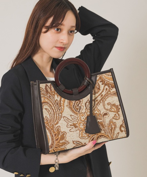 スタイリングのアクセントになる異素材トート 〇季節感のあるペイズリー柄 〇合わせやすいワントーンの配色 ペイズリーのジャガード生地とフェイクレザーを組み合わせたトートバッグ。 合わせやすいワントーンのカラーリングに、デイリーにぴったりなサイズ感で仕上げました。A4サイズ収納可能でオンオフ兼用でも◎ ※A4サイズ収納可能 総重量 : 約500g ※商品画像は、光の当たり具合やパソコンなどの閲覧環境により、実際の色味と異なって見える場合がございます。予めご了承ください。 ※商品の色味の目安は、商品単体の画像をご参照ください。 ▼お気に入り登録のおすすめ▼ お気に入り登録商品は、マイページにて現在の価格情報や在庫状況の確認が可能です。 お買い物リストの管理に是非ご利用下さい。