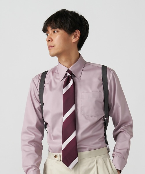 ◆シック ニュアンスカラーシャツ◆ 人気のくすみカラーでまとめたシンプルなニュアンスカラーシャツ。 シャツと同生地のくるみボタンを使用したクラシカルなデザインです。 くすみピンクとスナップダウンカラーでこなれ感のあるコーディネイトに。 エンジのストライプネクタイを合わせて華やかさをプラス◎ 【衿型】 スナップダウンカラー 【仕様】 カフリンクス使用可能な兼用カフス (アジャストボタン) 中丸カフス 胸ポケット(左胸)付き(ホームベース型) 背タック・背ダーツなし くるみ釦仕様 前立:裏前立仕様 【BRICK HOUSE by Tokyo Shirts / ブリックハウス バイ トウキョウシャツ】 業界トップ水準を誇るノーアイロンの形態安定加工は自宅で洗濯可能でお手入れ簡単! 高度な縫製技術を用いた高付加価値シャツでありながら選ぶことを気軽に楽しめます。 ベーシックから多様なデザインまで幅広いバリエーションで豊富なサイズ展開で、ディテールの隅々にまで織り込んで一枚一枚丁寧に仕立てられたシャツです。