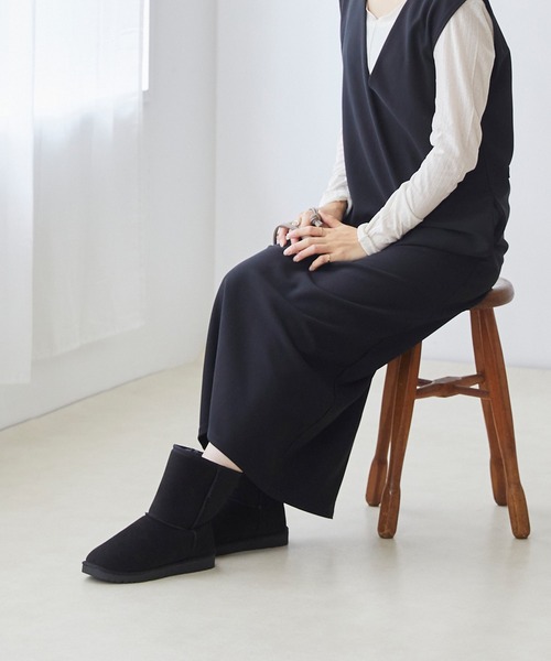 『愛され続けて14年の大人気ムートンがリニューアル! ショートムートンブーツ』 愛され続けて14年の大人気シンプルデザインのムートンブーツがをお客様の声を受けてリニューアル。 アッパーには撥水加工を施しているので、雨や雪にも耐性があり天気に左右されることなく着用可能です。旧バージョンは「雪道だと大変すべりやすいです」というお声をいただき、 どんなシーンでも、より滑らず安定感のある素材に変更。どんな天気でも頼りになる使い勝手の良いアイテムです。 <ポイント> 1.撥水加工を施しているので、雨や雪の日も安心 アッパーには撥水加工を施しているので、雨や雪にも耐性があり 天気に左右されることなく着用可能です。 (※完全防水ではございませんのでご注意ください。) 2.つま先までぎっしりファーが詰まって暖かさも抜群 つま先まで敷き詰められたファーと分厚い素材で暖かく寒さ対策も◎ 高い保温性と快適な履き心地になっています。 3.すべりにくい、やわらかい底材 旧バージョンは「雪道だと大変すべりやすいです」というお声をいただき、どんなシーンでも、より滑らず安定感のある素材に変更。軽さとクッション性・グリップ力を高めたソールを採用しました。 ============= 【機能性】:痛くない 歩きやすい 防寒 暖かい 大きいサイズ 小さいサイズ 撥水 はっ水 滑りにくい 【シーン】:お出かけ カフェ ショッピング デート デイリー カジュアル旅行 トラベル ドライブ 【デザイン】:ムートンブーツ ラウンドトゥ 無地 もこもこ ボア 親子コーデ お揃いコーデ 【おすすめカラー】:ダークブラウン チャコールグレー キャメル ベージュ ブルー ブラック ============= ◆サイズ選びに困っていませんか? \スタッフが試着してみました!/ ▼もりん / 普段サイズ:22.0cm【E】 選ぶサイズ⇒S Sは全体的にピッタリ。つま先捨て寸約15mm。Mは緩く足が動くので選べない。つま先捨て寸約30mm。 ▼きよこ / 普段サイズ:23.0cm【E】 選ぶサイズ⇒M Мは全体的にピッタリ。つま先捨て寸約10mm。Sは足首から先のゆとりが無く、圧迫感があるのでМを選ぶ。 ▼きっちん / 普段サイズ:24.0cm【D】 選ぶサイズ⇒LL LLは全体的にピッタリ。つま先捨て寸約10mm。Lは全体的にキツイ。親指の爪先が当たるのが気になるので、LLを選ぶ。 ※足の形には個人差があります。スタッフ試着感想は参考程度にお考え下さい。 ※ボリュームのあるファーを使用しているため、キツく感じる可能性もございますが、履いているうちになじんできます。 ============= ◆アイテムスペック ▼サイズ 【S(22.0~22.5cm)】 足長(木型):22.8cm/足幅(木型):8cm/履き口内周:30cm/筒丈:18cm/ 【M(23.0~23.5cm)】 足長(木型):23.6cm/足幅(木型):8.2cm/履き口内周:32.5cm/筒丈:19cm/ 【L(24.0cm)】 足長(木型):24.4cm/足幅(木型):8.4cm/履き口内周:33cm/筒丈:19cm/ 【LL(24.5~25.0cm)】 足長(木型):25.2cm/足幅(木型):8.6cm/履き口内周:34cm/筒丈:19.2cm/ 【LLL(25.5~26.0cm)】 足長(木型):26cm/足幅(木型):8.8cm/履き口内周:34.3cm/筒丈:19.5cm/ 【LLLL(26.5cm)】 足長(木型):26.8cm/足幅(木型):9cm/履き口内周:35cm/筒丈:20cm/ ※掲載サイズは、靴のラスト(木型)のデータです。 手作りの商品の為、製造段階で個体差が生じます。 ※生産時期により、色合い、風合い、質感に差が生じる場合があります。 素材:合成皮革/合成繊維 片足重量:約350g ワイズ:4E ============= ■完全防水タイプのムートンもございます 問い合わせ番号:25341884 ( 上記番号を商品検索に入力してください。)