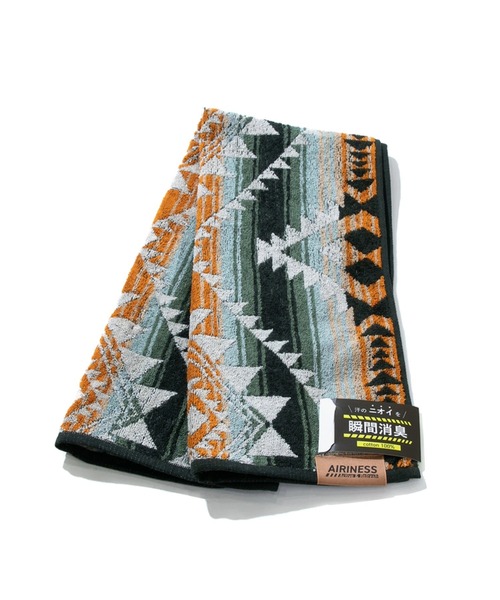 ☆AIRINESS☆ スクロール フェイスタオル 34x80 サイズ・・・縦80×横34㎝ 汗を流すスポーツや、キャンプなどのアウトドアでも活躍する消臭機能付きタオルシリーズ。 ■抜群の消臭効果 消臭機能糸DEW®Whiteを使用し、汗のニオイを瞬間消臭。 洗濯を繰り返しても消臭効果は半永久的に持続します。 ※DEW®は日本蚕毛染色株式会社の登録商標です。 ■コットン100% 機能性のあるタオルなのに、コットン100%で天然繊維の心地よい肌ざわり。 いつものタオルと同様に気兼ねなく洗濯機で洗えます。 ■抗菌効果 生地上の欣男増殖を抑え、タオルを清潔に保ちます。 ■程よいボリューム感 使いやすさを考えて、程よいボリューム感に仕上げています。 フェイスタオル、アクティブロングタオル、ウォッシュタオルの3アイテムには、 ちょっとしたところに吊り下げられるループ付きです。 アウトドアシーンやスポーツシーンで置き場所を考えずに使えて便利です。 化学の力で瞬間消臭し、繰り返し洗っても消臭効果が続くので 洗濯する人、してくれる人が臭いタオルから解放されるのも嬉しいポイントです。 【AIRINESS/エアリネス】 「アクティブで生き生きとした毎日を過ごそう」 ストレスフルな日々の中、少しカラダを動かしただけでも、気分がすっきりしたことはありませんか? AIRINESSはアクティブに活動する時に使ってご機嫌になれるタオルブランドです。