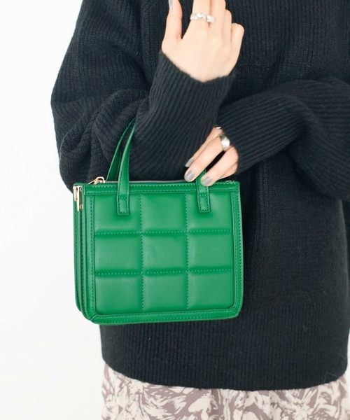 キルティング&ビビットカラーがトレンドライクスタイリングのアクセントにぴったりのミニバッグ〇キルティングデザイン〇取り外し可能なショルダーストラップ付〇ビビットなカラー展開■デザインキルティングがトレンドライクなミニバッグ。コンパクトなサイズ感がスタイリングのアクセントにぴったりです。コーデのアクセントになるダークピンク、グリーンに、取り入れやすいブラックを加えた3色展開です。■ポイント取り外し可能なショルダーストラップが付きで、2通りの持ち方を楽しめます。ショルダーバッグとしてはもちろん、ハンドバッグとして使用することができます。■コーディネートビビットなカラー展開とトレンドライクなデザインが魅力のミニバッグ。普段のボトムを合わせるだけで今っぽいコーディネートに。コーディネートの差し色として使用するのもおすすめです♪■内容/開閉:マグネット式、内ポケット×1、ファスナー付中仕切り■持ち手の高さ:約9.5cm、ショルダー長さ:約65~120cm※商品の特性上、色・柄の出方が多少異なる場合があります。--------------------------------------------------------------※サイズ寸法は実際の寸法と多少の誤差がある場合が ございます。※ご覧いただいているPC/WEB環境や撮影環境により、 多少色味が異なって見える場合がございます。【お買い物をよりお楽しみいただく為に】▼商品のお気に入り登録をおすすめします♪『♡をクリック!』完売カラーの再入荷やラスト1点の追加、セールの際の通知を受ける事ができます。ブランドのお気に入り登録もご一緒にお願い致します。--------------------------------------------------------------