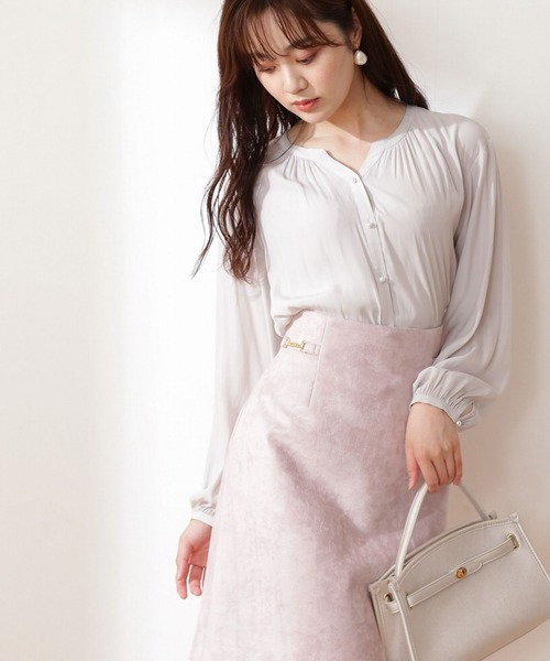 【商品特徴】パールボタンを施した華やかなブラウスです。表面感のある割線素材を使用、きちんと見えを叶える風合いです。襟ぐりと袖にギャザーをいれ女性らしいシルエットを演出します。キレイめの素材とデザインは、オンオフ問わずフェミニンな印象で着られます。【スタイリング】タイトスカートを合わせれば、品の良い通勤スタイルが完成します。<商品のお気に入り登録>お気に入りアイテムの値下げ・再入荷・在庫1点などの通知を受け取ることができる便利機能ですので気に入ったアイテムはお気に入り登録がおすすめ!<ショップのお気に入り登録>新商品や再入荷、セール、クーポン配布などお得な情報を受け取ることができます。●撮影はサンプル商品で行っている為、仕様とサイズが異なる場合がございます。●スタジオ及び屋外で撮影した着用画像は、光の当たり具合で色味が違って見える場合があります。予めご了承ください。
