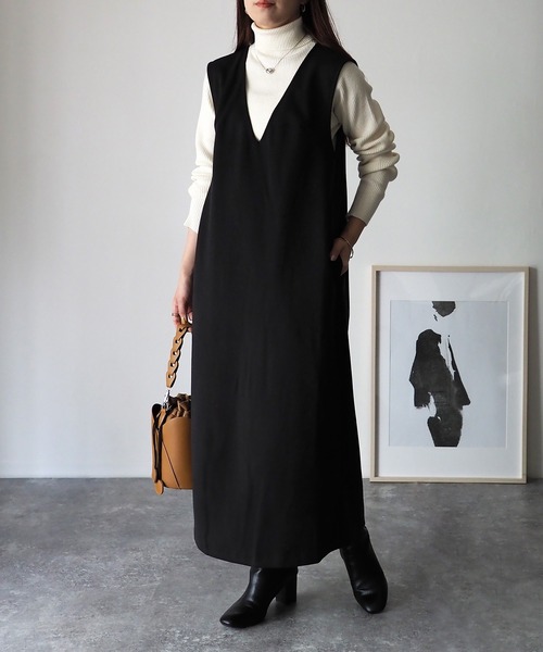 【Riberry 後ろスリットVネックジャンスカ】 インナー次第で雰囲気が変わる! Vネックジャンパースカート ■Styling シンプルなデザインなので、スタイリングの幅が広がるワンピース。。 すとんとした落ち感のあるロング丈で洗練された大人スタイルが楽しめます。 ボリューム袖のブラウスやニットを合わせればきれいめな印象に、 ベーシックなリブニットやロンTを合わせればカジュアルな印象になります◎ ■Detail 落ち感のあるストンとしたシルエット。 後ろにスリットがあるので動きやすいワンピースです◎ ポケット付きもうれしいポイントです◎ ■Material フェイクウールで秋冬大活躍する素材感です。 ※詳しいお手入れ方法は商品タグをご参照ください。 【Information】 ◆《お気に入り登録》がオススメ◆ ・「商品のお気に入り登録」で再入荷通知や、ラストの通知、セール通知も受け取ることが出来ます。 ・「ブランドのお気に入り登録」で新商品や再入荷など、お得な情報を受け取ることが出来ます。 ※撮影時のライティング、ご覧になっているモニター・PC環境により、実際の商品と色味が異なって見える場合がございます。予めご了承をお願い致します。
