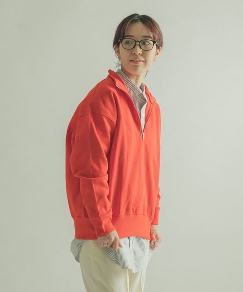 冷え込む季節や季節の変わり目に重宝する定番のスウェットシリーズを新素材で仕立てモダンな雰囲気にアップデート。 OE(オープンエンド=空紡糸)天竺生地を使用する事で適度な粗野感をプラスし、着こむごとに風合いが増していき、裏地は肌馴染みの良い優しいタッチの裏毛が魅力。 一見スポーティーな印象を与えるハーフジップデザインは、程よくゆとりのあるシルエットやインナー次第でシティーユースな雰囲気に。 ジップを閉めると衿がしっかりと立ち、防寒対策にも最適です。 シャツやロンT、ワンピースと重ねたりと様々なレイヤードスタイルが楽しめるアイテムです。 《シリーズアイテム》 DF27-24V066 FORK&SPOON OE裏毛スウェットパンツ DF27-11V061 FORK&SPOON OE裏毛クルーネックスウェット 【FORK&SPOON(フォークアンドスプーン)】 DOORSのプライベートレーベル。その名前のとおり「毎日食事を摂るように、毎日大切に着てほしい」という思いが込められています。毎日着たくなる様な心地のよいベーシックスタイルは、世代を超えてお楽しみいただけます。 ※商品画像は、光の当たり具合やパソコンなどの閲覧環境により、実際の色味と異なって見える場合がございます。予めご了承ください。 ※商品の色味の目安は、商品単体の画像をご参照ください。 ▼お気に入り登録のおすすめ▼ お気に入り登録商品は、マイページにて現在の価格情報や在庫状況の確認が可能です。 お買い物リストの管理に是非ご利用下さい。 ----------------------------- 透け感:なし 伸縮性:ややあり 裏地:なし 光沢:なし ポケット:なし -----------------------------