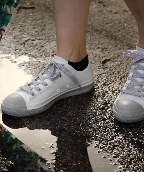 雨降るかな?降らないかな?そんな日には迷わず履けるレインスニーカー ■オールウェザー使えるスニーカー型レインシューズです。 ■丸洗いOKなので、汚れても大丈夫です。 ■一見レインシューズに見えないスニーカーはPVC素材でステッチや切り替え部分など細かな部分も表現されています。 ■普段の服装に合わせやすい使い勝手の良いベーシックなデザインです。 ■レインシューズに見えないから晴雨兼用で気軽に使えます。 ■インソールにはオリジナルプリント付き。 ■色違いの靴紐が付属しているので、気分に合わせて付け替えができます。 ■女性やお子様が合わせやすい、くすみカラーの3サイズ展開。 ---------------------------- Sサイズ(約23~23.5cm) Mサイズ(約23.5~24cm) Lサイズ(約24~24.5cm) ---------------------------- 【サイズ感の参考情報】 通常23~23.5cm着用(幅広ではない)のスタッフの場合、Sサイズがしっくり、Mサイズは少し大きい 通常23.5~24cm(幅広)のスタッフの場合、Sサイズは甲の部分がややきつい、Mサイズがしっくり ※本体の素材が柔らかいため、やや大きめに感じるかもしれません。 足の形状などによって履き心地は異なる場合がありますので、靴下や下敷きなどでご調節ください。 なお、付属の下敷きを外しての着用はクッション性が失われてしまい、ケガのおそれがありますため、お避けください。 レイングッズ/レインアイテム/雨予報/雨天/雨具/雨靴/雨の日/梅雨/ガーデニング/ガーデンシューズ/園芸/庭いじり/洗車/水辺/ローカット/紐靴/バイカラー/渋色/サンドカラー/くすみカラー/ブルー/グレー/ブラウン/ホワイト/ベージュ/カジュアル/防水シューズ/レジャー/ピクニック/水溜り/ラバーシューズ/ラバースニーカー/ 雨の日/雨具/雨靴/レイングッズ/紐靴/ローカットレインスニーカー/ツートン/アウトドア/レジャー/水辺/ガーデンシューズ/洗車/