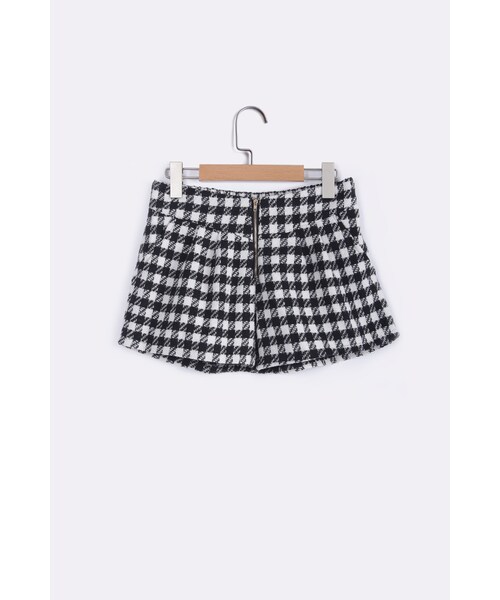 此款為正常版型黑白格紋百搭又實穿,合身版型穿起來俐落簡潔,前中古銅色拉鍊增添質感。上半身可選擇經典白襯衫,上班或逛街都很適合。