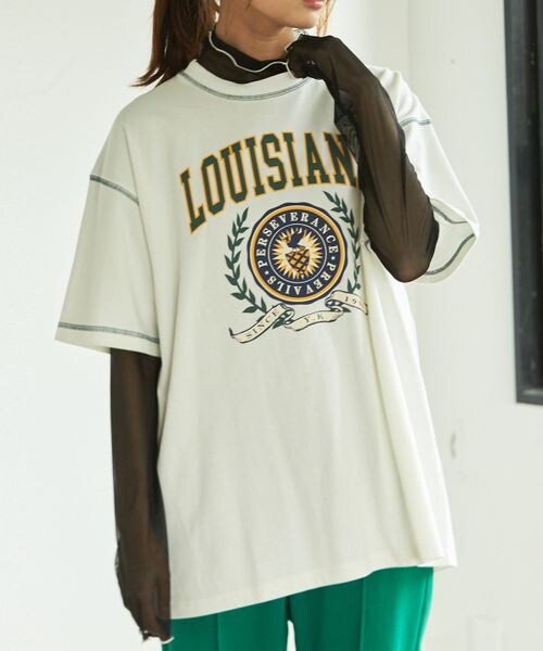 ーーー トレンドのカレッジモチーフのグラフィックと 首元と袖口のカラーリンキングデザインがアクセントに。 フロントの大きめなプリントで羽織のインアイテムとしても◎ 長めの着丈としっかりとした首元のリブがカジュアルなデザイン。 素材は着崩れしにくいコットン100%で仕上げた、程よく厚みのある生地を使用しています。 ジェンダーフリー(ユニセックス)で着用出来るのも特徴です。 ーーー ※サンプルにて撮影をしておりますので、実際の商品とは仕様や加工・サイズ等が若干異なる場合がございます。 ※撮影環境により、光の当たり具合で色味が違って見える場合があります。あらかじめご了承下さい。