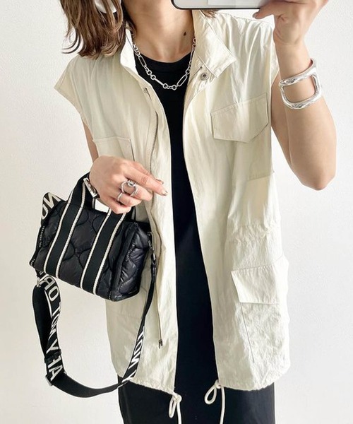 今期旬のレイヤードスタイルが楽しめる ハイネックミリタリーベスト 普段のスタイリングに羽織るだけで今年らしい着こなし! ナイロン素材で軽やかな着心地。 ウエストの内側と裾はドロスト仕様になってるから お好みで絞ってシルエットの変化を楽しめます。 身頃に4つの大きめポケットがあり機能性も抜群です。 着るだけでこなれ感のある メンズライクなおしゃれコーデが完成する注目アイテムです! ◆商品のお気に入り登録◆ 気になるアイテムをお気に入り登録しておけば セールの通知・ラスト1点になった時の通知や、再入荷通知を受けることができます☆ ◆ブランドのお気に入り登録◆ ブランドのお気に入り登録をしておけば 新商品の発売や再入荷、タイムセールやクーポン発行のお知らせなど、SUGAR BISKETがお届けするお得な情報をいち早く受け取ることができます☆