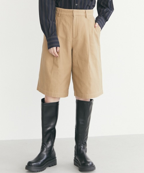 しっかりとした生地感のヘビーツイルで仕立てたハーフパンツ。 タックを入れることでお腹周りはすっきりとした印象に。裾幅を広めに仕上げることで、脚を細く見せてくれる効果も期待できます。 シンプルなデザインでどんなアイテムとも合わせやすく、カジュアルにもキレイめにもスタイリングが楽しめる1着です。 【素材】 透け感[無し] 裏地[無し] 伸縮性[やや有り] 光沢感[無し] 生地の厚さ[厚手] 付属品[無し] ポケット[有り]※前2つ ● Green Parks ● (グリーン パークス) 20以上の人気ブランドを取り扱うアパレルセレクトショップ。 ベーシックながらもさりげなくトレンドを取り入れたオリジナルブランドchocol raffine robeも展開。 ▼ 商品のお気に入り登録がおすすめです ▼ 商品ページ内のハートマークをクリック。完売時の再入荷や、最後の1点の通知、コーディネート画像がアップされたとき、お得なお値下げの際の通知を受ける事ができます。 【お知らせ】ページでも通知が確認できます。
