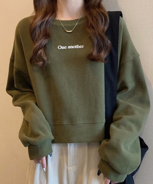 大人カジュアルコーデに欠かせないロゴスウェット ■デザイン ベーシックなクルーネック仕様のプルオーバートレーナー。 胸元にはトレンドのプチロゴをデザインしました。 裾や袖元のリブで程よいボリューム感をプラス。 カジュアルながら女性らしいシルエットを演出する1枚です。 ルーズなシルエットが華奢見えするのも嬉しいポイント◎ ■素材 柔らかく優しい素材。 適度な厚みでロングシーズン着用していただける生地感です。 ■スタイリング ダボっとしたワイドパンツやスウェットパンツと合わせてストリートな着こなしが◎ スラックスやジャケットを合わせたキレイめコーデや、デニムやマーメードスカートと合わせた大人カジュアルなコーデなど幅広い着こなしが楽しめます。 ハイネックインナーを首元から覗かせたり、Tシャツやシャツをレイヤードしたスタイリングもトレンドライクでおすすめです! 様々な着こなしに対応できる万能なスウェットとなっています!