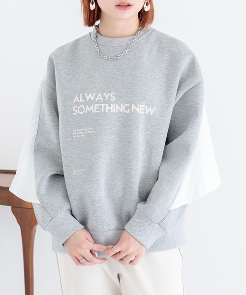 異素材、ロゴ、バックシャン… おしゃれポイントをふんだんに詰め込んだプルオーバーが入荷しました。 ○POINT ・新しさを意味する『always something new』のロゴがキャッチーなプルオーバー。 ・前後で異素材を使用しており、前身頃はスエット生地、後身頃は布帛で着心地良く軽量です。 ・背面から両袖に伸びるフレアがカジュアルさの中に上品さを演出してくれます。 ○STYLING ・デニムはもちろんロングスカートとのコーディネートも◎ 裏地:なし 光沢:なし 伸縮性:あり 透け感:なし 生地の厚さ:普通 ポケット:なし 【anana】 自分の心地よさを知り、美しく自由に生きるために 柔らかくタフなマインド 思いっきり笑える女性たちへエールを送りたい そんな思いをこめて・・・