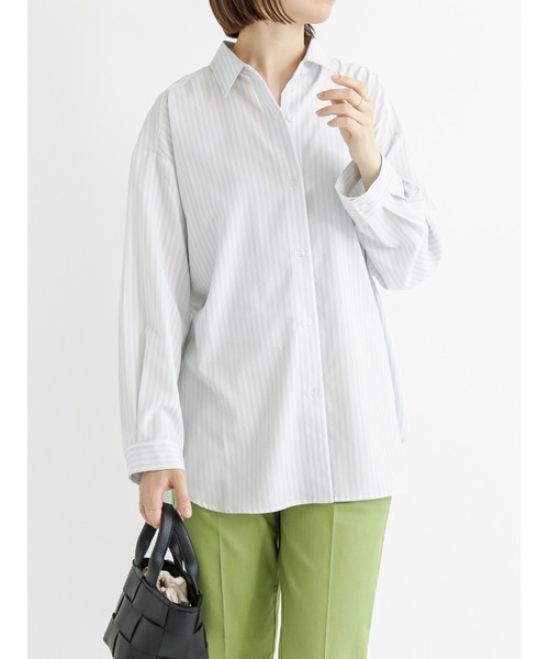 襟付きのデザインが上品で洗礼された印象を漂わせるシャツ。 前後で異なる丈感は、スタイリングにこなれ感をプラスします。 フロントボタンを開けて着用すれば、羽織りとしても着用することが可能◎ 日常使いだけでなく、オフィスカジュアルコーデなどにも活躍してくれるアイテムです。 ※商品画像は、撮影環境やお客様のご利用のPC・スマートフォンのモニター環境などにより実物と色味に差異がある場合がございます。 【その他採寸】 M 着丈:[前]66cm[後]73cm L 着丈:[前]69cm[後]78cm