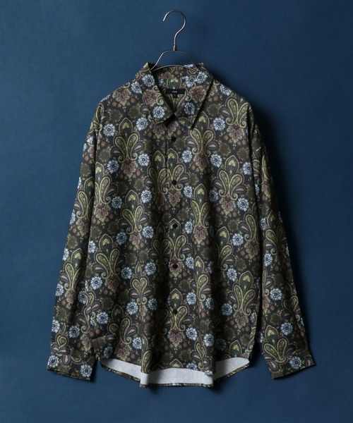 Georgette Total Pattern Print Big Silhouette Thickness Shirt/ジョーゼット 総柄プリント ビッグシルエット とろみシャツ セットアップ対応