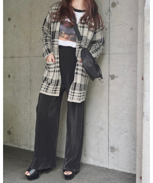 サイズFREE 総丈76cm 肩幅42cm 袖丈58cm バスト108cm (COLOR)1color ・BEIGE×BLACK (CONDITION RANK) SS:新品アイテム (DETAIL) ・チェック柄 ・ポケット有り ・ニット/伸縮性有り ・素材:100%POLYESTER 商品コード:2201200901526