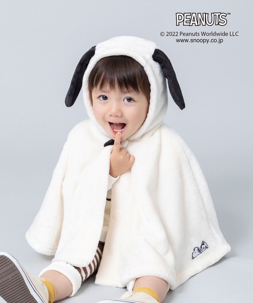 ふわふわとした優しい手触りに、スヌーピーの耳付きデザインがかわいいマント。サイドのスヌーピーワッペンもポイント♪ご自宅用はもちろん、ギフトにもおすすめです。●生地の厚さ:普通●裏地:なし●ポケット:なし●伸縮性:なし●透け感:なし 【triois lapins/トロワラパン】 コンセプトは“Sense of Fun !”(遊び心)“茶目っ気いっぱいのおしゃまな女の子” 子どもたちのとびっきりの笑顔がいつもそこにある。そんな空気みたいな日常に特別なこだわりなんていらない。楽しくて自由なスタイルにちょっぴりトレンドを感じる新鮮な色やディテールを盛り込み、遊び心のあるグラフィックをスパイス。コンテンポラリーキュートなデイリーカジュアルを提案します。