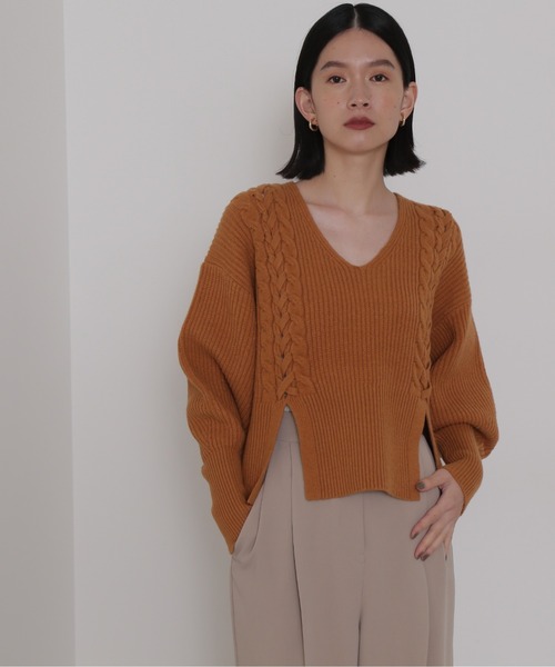 [design & styling] フロントのケーブルの編み上げデザインが華やかで目を引くデザインニットは、ドロップショルダーと、立体的なマトンスリーブのゆったりとしたシルエット感を、クロップド丈で仕上げ今年顔の1枚に。短めの着丈なので、ハイウエストのパンツや落ち感のあるマーメイドスカートあわせが好バランスでおすすめです。 [fabric] ストレッチの効いたふくらみのある糸で編み上げた軽くてあたたかみのある素材です。 ※モデルの着用画像の場合、光の当たり具合により、実際の色味と異なって見えることがございます。色味は、商品単体の画像をご参照ください。 【ZOZOでのお買い物をもっと楽しむために!】 ■ブランド・ショップのお気に入り登録 ・いち早く新作アイテムや限定クーポンなどのお得な情報を受け取ることができます! ■商品のお気に入り登録 ・完売商品の再入荷通知や、残り1点の通知、各種セール通知も受け取ることができ、よりお得にお買い物頂けるチャンスがあります! ※ご注文いただいた予約商品のお届け時期の確認は、注文履歴ページより行えます。