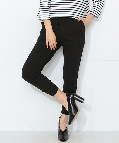 定番のスウェットパンツにも女の子らしさをトッピング☆ ポケット部分のチュールとサテンの切り替えをポイントにした裏毛スウェットパンツです。 ウエスト部分はゴム&紐仕様で調節可能。ヒールを合わせてガーリーに着こなしていただきたいひと品です。