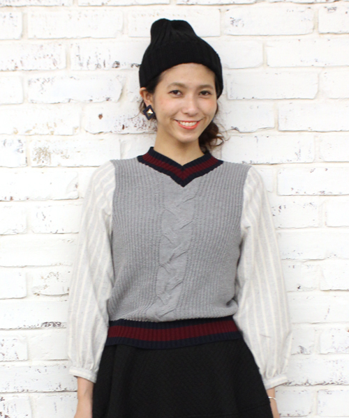 mystic(ミスティック) チルデンニットと袖の切替がポイントのプルオーバー。1枚でコーディネイトの主役に着て頂けます。パンツにもスカートスタイルにもお勧めです。