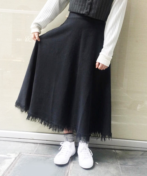 Kastane(カスタネ)普通のデニムに飽きた方に♪切りっぱなしのロングスカートが新鮮☆オールシーズン使えます!