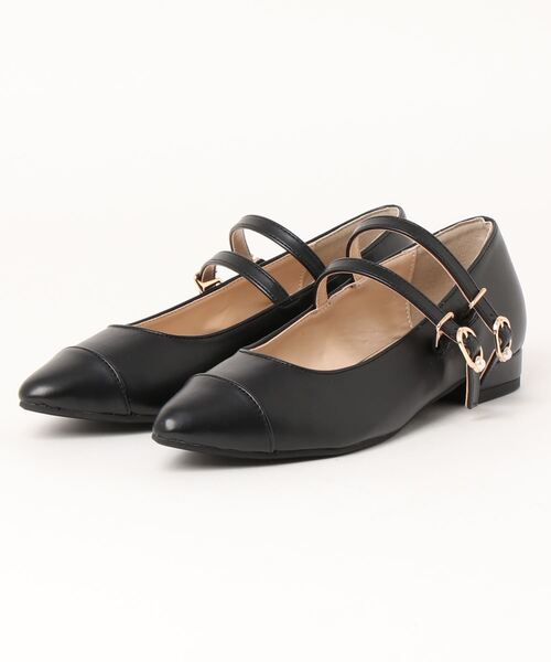 クラシカルな雰囲気バツグンのメリージェーンフラット。甲のダブルベルトやバックル部分にパールをつけてレディライクなポイントをつけています。すっきりとしたシルエットは、安定感のあるフラットソールで歩きやすく仕上げたシューズです。