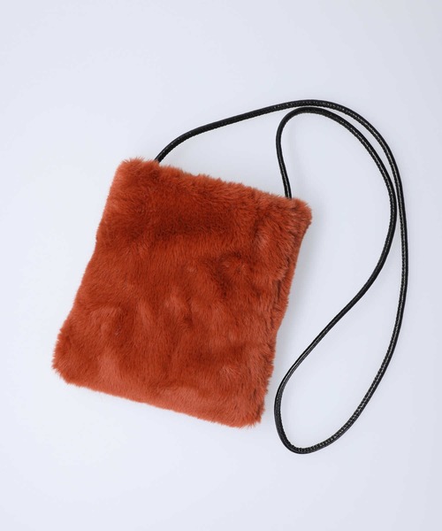 【デザイン】フワっとした良い上質フェイクファーをシンプルにブラックPUレザーでポシェットに仕上げました。斜め掛けや肩掛けも出来る長めのショルダーハンドル。自分で結んで留めるタイプなので好きな長さに調節が可能です。【スタイリング】スマホ・ミニ財布・その他小物が収納でき、ちょっとしたお出かけやサブバッグとしてもおすすめです!\n