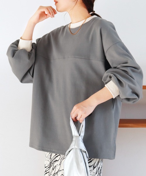//////////////////////////////////▶新色追加◀グレー(DEEP GRAY×OATMEAL)//////////////////////////////////■Pointそれぞれのカラーに合わせた配色で、たっぷり贅沢にとった身幅と着丈でゆるっと着れる!ドロップショルダー×もたっとした袖がかわいさをUPしてくれます♪胸の下の位置で切り替えをつけたデザインで単調にならずスッキリした仕上がりです。-----------------------------------------------------------同じシルエットのロゴver.もご用意しております!”ビッグシルエットロゴプルオーバー”▶品番:R22130-v-----------------------------------------------------------■Deteilぐっと落としたドロップショルダーで計算されたシルエット!華奢見えするのが嬉しい◎ネック回りは程よいあきがあり、締め付け感もなく着心地も快適です。■Coordinateパンツスタイルにはもちろん、スカートスタイルにも♡ゆるっと合わせるのがおすすめ。インナーとしてワンピースやサロペットと合わせても!柄やチェックのパンツにパンプスやヒールで、大人のはずしコーデにもピッタリです。■綿素材の商品のお手入れ方法について綿素材のお洋服はお洗濯方法により縮みやねじれて見える状態になることがございます。はじめてお洗濯をしていただく時に強く縮みが出る事がございます。そのため、お洗濯の際は「手洗い」または「ドライコース」で行うことをおすすめしております。また、脱水時間は30秒程度と短くするようにお願い致します。乾燥機は縮む原因になりますのでご使用はお避け下さい。干す際は『軽くしわを伸ばして』形を整えてから干していただくことをおすすめしております。■■■もっとお買物をお得にお楽しみいただくために■■■【商品のお気に入り登録】再入荷のお知らせや、ラスト1点のお知らせ、セールのお知らせを受け取ることができます!【ブランドのお気に入り登録】新作商品や完売アイテムの再入荷情報など、お得な情報をいち早く受け取ることができます!※サイズは現物をスタッフが平置き採寸したものになります。※モデル着用写真は撮影環境により、多少実際のカラーと異なる場合がございます。※生産時期により若干の色ブレやサイズの変動が生じる場合がございます。 生地の素材や種類によってシワになりやすいもの、または同じ素材でも製造時期によって異なる場合がございます。予めご了承くださいますようお願いいたします。※ご注文いただいた予約商品のお届け時期の確認は、注文履歴ページより行えます。