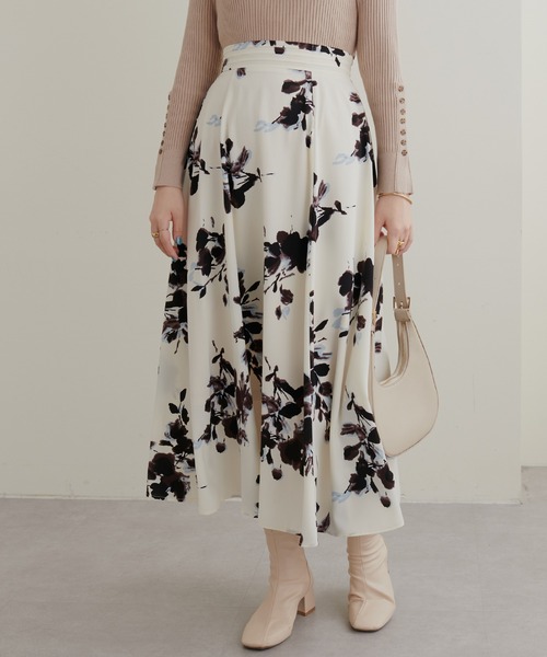 【2022AW natural couture】水彩のような上品なモチーフデザインが目を惹く◎ ウエストタックデザインアソートスカート ■Design 裾にかけて緩やかなフレアラインが女性らしさ引き立つ、今季注目のスカート。 広がりすぎず、動く度に美しく揺れる美シルエットラインはデザイナーこだわりのポイント。 ウエスト部分に、重なるように施したタック使いがさりげないポイントになり、 トップスをウエストインしたスタイリングで映えます。 ウエストの後ろ部分はゴム仕様で、履き心地の良さも意識しました。 ■Styling カシミアタッチのニットやリブ使いのハイネックニットをインスタイルで合わせると、 ウエストのタック部分をポイント見せした、シンプルながらも上品な着こなしが叶います。 シアー素材のトップスやディテール袖のブラウスと合わせると、旬の要素もプラスされます。 冬はゆるっとしたニットプルオーバーやざっくり編みのカーディガンを合わせても◎ ■Fabric さらっとした落ち感のある素材を採用。 季節を限定せずロングシーズンお召し頂けます。 =============== 透け感:ほとんどなし 裏地:あり 伸縮性:なし 光沢感:なし 生地感 :さらっとした生地感 =============== 【お気に入り登録でお得な情報がいっぱい】 ・「商品のお気に入り登録」で再入荷通知や、ラスト1点の通知、セール通知をいち早く受け取ることができます。 ・「ブランドのお気に入り登録」で新商品や再入荷など、お得な情報を受け取ることができます! ※店舗の入荷時期は商品によって異なります。 店頭の在庫状況につきましては各店舗にてお問い合わせください。
