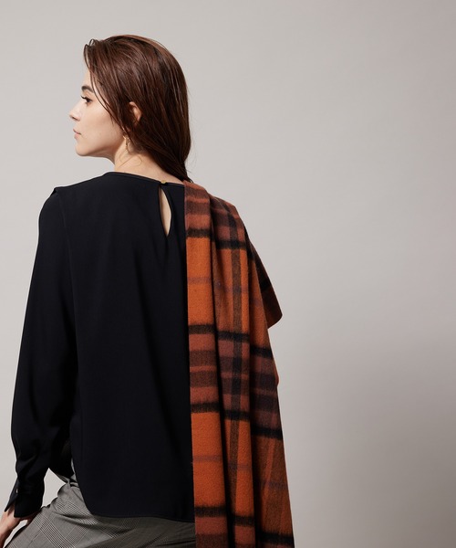 【素材】ポリエステルでイージーに扱え、落ち感もあり白でも透けにくいちょうどいい肉感の素材。【デザイン・シルエット】ショルダータックディテールが特徴のきれいめブラウス。シンプル過ぎず、1枚着としてもトレンド感があり華やかなデザイン。またゴールドの釦がシックな印象で着用いただけます。【カラー】ホワイト、ベージュ、ブラックの3色展開。【おすすめのスタイリング】同時期のジャケットセットアップシリーズとのスタイリングで今年らしいONスタイルがおすすめです。----------------------------透け感:なし裏地:なし伸縮性:多少あり光沢感:なし生地の厚さ:中肉ポケット:なし開き方:ボタン(首の後ろにあり)洗濯方法:洗濯機可----------------------------【モデル情報】モデル身長:171cm着用サイズ:38※画像の商品はサンプルです。 実際の商品と仕様、加工、サイズが異なる場合がございます。※撮影場所やライティング、お使いのモニター環境によって色の見え方が異なる場合がございます。※商品のカラーは画像の色味をご参照ください。動画は仕様説明のため、色味が実物と異なる場合がございます。