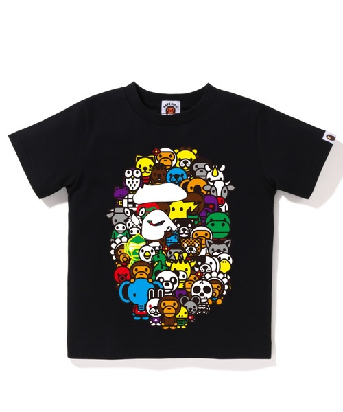 NEW ARRIVAL!コットン天竺のオリジナルボディを使用したショートスリーブTシャツ。フロントにBABY MILOのオールキャラクターで構築したAPE HEAD柄グラフィックをラバープリント。左袖にピスネームが付属するデザイン。レギュラーフィットシルエット。4色、キッズ6サイズ展開。