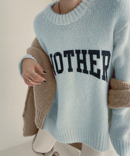 ロゴと配色が可愛いニット ◆デザイン フロントロゴがおしゃれでふんわりあったか♪ オーバーサイズが今年っぽいロゴ入りニットトップス ざっくり着こなして大人可愛いスタイルに。 ◆素材 柔らかい生地感で毎日でも着たくなる素材感です。 ◆スタイリング 1枚でざっくり着こなして大人かわいいカジュアルな装いに ラフな装いからしっかりカジュアルまで◎ ボトムスを選ばず幅広く合わせていただけます。