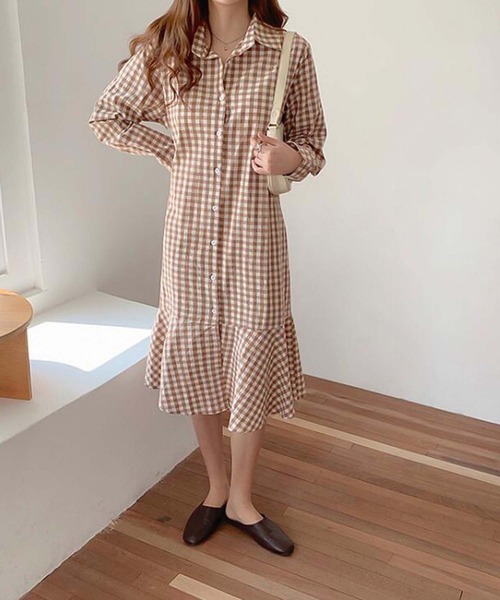 ギンガムチェックがお洒落な着こなしを演出してくれるロングワンピース ■デザイン すっきりとした深Vネックでカジュアルになりすぎず、女性らしさのあるデザインに仕上げ、大人っぽさを出しました。 細かいチェック柄が甘すぎず、爽やかな印象。 程よい開き具合のVネックがデコルテラインを綺麗に見せてくれます♪ ウエストマークできるのでスタイルアップ効果も。 シーズンムードが高まる一着です。 ■素材 さらっとした気持ちのいい素材。 ギンガムチェックでシーズンムードが高まります。 ■スタイリング 開襟なので大人っぽく、スニーカーやサンダルと合わせカジュアルダウンした着こなしがおすすめです! さらっと一枚で着こなせ、忙しい朝にも最適。 軽くてシワになりにくいので旅行にも◎ オシャレで華やかなオススメの一着です。