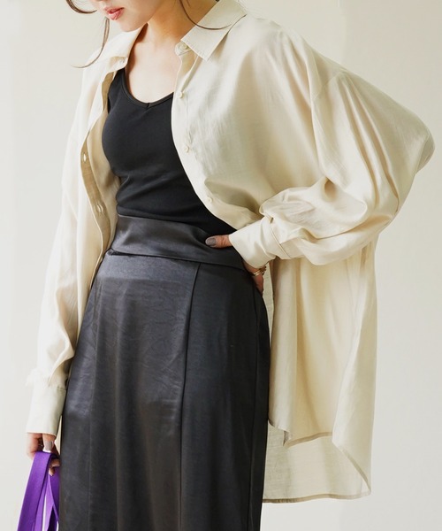 さらっとした肌触りと程よい光沢感がどんなコーディネートにも合わせやすいシンプルなシャツです。ゆったりとしたシルエットなので、羽織としてTシャツやキャミソールと合わせるコーディネートがおすすめ。ボタンを留めてトップスとして着用しても◎腰回りをカバーしてくれる着丈がうれしいポイントです。商品補足厚さ:薄手光沢:ややあり伸縮性:なし裏地:なし透け感:ライトベージュ少しあり【IAMUSE】「自分自身を楽しませるような1着を」特別な1着もいいけれど、毎日着たい1着を目指して。女性の毎日の〝楽しみ“に寄り添い、溶け込めるアイテムを提案いたします。シンプルながらもサイジングやテキスタイルはトレンド感のあるスタイルに。着回しのしやすいアイテムを提供いたします。■お気に入り登録について完売カラーの再入荷通知や、完売間近の通知、セールの通知を受け取ることができます。■ブランドお気に入り登録について新商品や再入荷など、いち早くブランドのお得な情報を受け取ることができます。取扱注意事項※サイズは、測定方法と測定者によって多少の誤差がありますのでご了承下さい。また体型によって、サイズ感に個人差がございます。(平置き採寸)※商品によってはシワがつきやすく、畳ジワや折りジワなどが強く出る場合がございます。※生地の素材や染色により、においが気になる場合がございます。※レースやシアーアイテムなどは繊細な素材を使用しているため、摩擦を避けお取り扱いにご注意下さい。※お洗濯の際には、洗濯専用ネットをご使用の上、色移りを避けるために個別での洗濯ををお勧め致します。※着用、お取り扱いの際は、商品についている品質表示とアテンションを必ずご確認下さい。※掲載画像は撮影環境により実際の色味と異なる場合がございます。※生産時期によって若干の色味、原産国が異なる場合がございますが、品質には変わりございませんので予めご了承ください。