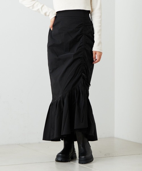 ドロストデザインが目を惹くマーメイドスカート ▶商品ポイント ・今季トレンドのくしゅくしゅとしたドロストデザインがいつものコーデを新鮮に見せてくれます。 ・タイトなシルエットからの裾の広がりでメリハリのあるレディーな印象にしてくれます。 ・ドロストディテールと、脚長効果のあるハイウエストデザインがスタイルアップ見えを演出。 ▶スタイリングポイント ・デザイン性があるためシンプルなトップスに合わせるだけで様になるアイテムです。 ・今季トレンドのショート丈のトップスと合わせるとすっきりしたバランスで着ていただけます。 ・スウェットやタートルニットでカジュアルに着るのはもちろん、肌見せトップスで女性らしく合わせるのも◎ ▼お気に入り登録のおすすめ 【気になるアイテムを登録】 ハートをクリックしてお気に入りに登録すると 完売カラーの再入荷やラスト1点の通知、セールの通知を受けとることができます。 【ブランドを登録】 新商品や再入荷、セール通知など、いち早くブランドの情報を受けとることができます。 是非ご利用頂き、お買い物をお楽しみ下さい。 ▼商品について ・サイト上のカラー名と、お届け商品に記載されているカラー名が異なる場合がございます。 ・商品の色味は、撮影場所や光のあたり具合などにより色味が違って見える場合がございます 。 また、お客様のお使いのPCのモニター環境などにより色味が違って見える場合がございます。 予めご了承の上ご注文下さい。 ▼返品・キャンセルについて ・着用、洗濯後の返品、交換は致しかねます。 ・商品到着後、着用前に商品を確認して頂きますようお願い致します。 ※画像の商品はサンプルです。実際の商品と仕様、加工、サイズ、素材が若干異なる場合がございます。 ▼新型コロナウィルス感染拡大による、製造元地域でのロックダウン(都市封鎖)の影響により、お届けに遅れが生じる場合がございます。 ▼ロックダウンの影響により、お客様へのご連絡が直前になってしまう場合もございますので、予めご了承ください。