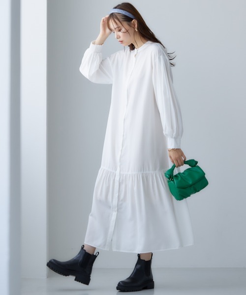 ●商品説明● ☆.。.:*・゚☆ NEWブランド『miclat(ミクラ)』 ☆.。.:*・゚☆ 袖のパフっとしたボリューム感が可愛いシャツワンピース! 少しプッシュアップすることで、袖の可愛さが引き立ちます。 長めの丈で、ワンピースとしても羽織としても活躍するアイテム。 テロッとした薄手の素材感で、重ね着を楽しむ季節にぴったりの1枚です♪ #トレンド #ディティール #1枚#着映え #1枚あると便利 #定番カラー #オフホワイト/カーキ #落ち感 #秋#冬 #ロング #ロング丈 #ロング丈スカート #シャツワンピース #マキシ丈ワンピース #ロング丈ワンピース #体型カバー #二の腕カバー #ボリューム袖 #大きいサイズ #プラスサイズ #大きいサイズレディス #ボディポジティブ #L/LL/3L/4L/5L/6L/8L/10L ●仕様● 淡色は透けやすいのでインナーにキャミソールなどをご着用ください。 前ボタン開き 袖口ゴム入 ●洗濯方法● 手洗い ●SMILE LANDコンセプト● 「好きな服だけ着ていたい!」 自由なサイズ選びで楽しめるファッションを提案します。 ●サイズ● SMILELANDは大きいサイズ専門店として、サイズ設計にとことんこだわります! 着心地良くおしゃれを楽しめるよう、独自のサイズ設計になっております。 そのため、他ショップ様のサイズより少し大きめに感じられることがあります。 <対応サイズ>を参考にしていただき、お買い物をお楽しみください。 <対応サイズ> L :バスト:86~94/ウエスト:69~77/ヒップ:92~100 LL :バスト:93~101/ウエスト:77~85/ヒップ:97~105 3L :バスト:100~108/ウエスト:85~93/ヒップ:102~110 4L :バスト:107~115/ウエスト:93~101/ヒップ:107~115 5L :バスト:114~122/ウエスト:101~109/ヒップ:112~120 6L :バスト:122~134/ウエスト:109~123/ヒップ:120~129 8L :バスト:134~146/ウエスト:123~137/ヒップ:129~138 10L:バスト:146~158/ウエスト:137~151/ヒップ:138~147 ※こちらはヌードサイズです。 ※平置きのアイテムサイズとは異なる計測方法となりますのでご了承ください。 ●3Lモデル着用例● 身長:158cm/バスト:105/ウエスト:93/ヒップ:105→サイズ:3L 身長:155cm/バスト:104.5/ウエスト:91/ヒップ:108→サイズ:3L ●オーバーサイズアイテム● 大きめサイズの設計を活かして、オーバーサイズアイテムとして着用可能です。 様々なサイズの方に着用いただけます。