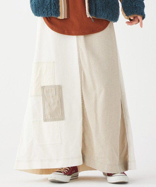 《KRIFF MAYER 秋冬アイテム!製品染めクラフトスカート》 様々な素材を切り替え製品染めでカラー展開したクラフトリメイク風デザインがポイントのスカートです。 クリフらしい古着テイストの雰囲気ある1枚に仕上げました。 また、シルエットも綺麗で様々なコーデに役立ちます! フロントにスリットがはいっているので足が動かしやすく 両サイド、バックに計4つのポケットを配しており、機能面、デザイン共にこだわりました。 デイリーユースはもちろん、アウトドアやキャンプにもオススメのアイテムです♪ 【対象 ※以下のような方に多くご利用いただいております。】 年代:10代、20代、30代、40代、50代~ ------------------------- シルエット:スタンダード 生地の厚さ:中肉 透け感:なし 伸縮性:あり 裏地:なし ケア方法:洗濯機洗い可 ------------------------- ●『KRIFF MAYER』(クリフメイヤー) General Wear for FAMILY CAMP!! 家族で着られるアメリカンカジュアルをテーマに誕生したクリフメイヤー。 より家族が生き生きと暮らすには、シティ⇄ネイチャーのボーダーをなくす必要があると感じています。 その一つのキーとなるのが、「ファミリーキャンプ」だとクリフメイヤーは思うのです。 お父さんが「今週末はキャンプに行こっか」と言えば、「釣りやってみたい!それと川遊びも!」「わたしは焚き火でマシュマロ焼く!」と子供たちが嬉しそうにしている、そんな光景が日常に溢れるようにしていきたい。 クリフメイヤーに着替えたら、それは待ちに待った週末の合図。 家族との特別な時間を当たり前に。 クリフメイヤーの「General Wear for FAMILY CAMP!!」にはそんな想いが込められています。